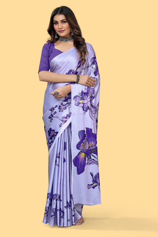 Banarasi Floral Printed Satin Silk Saree