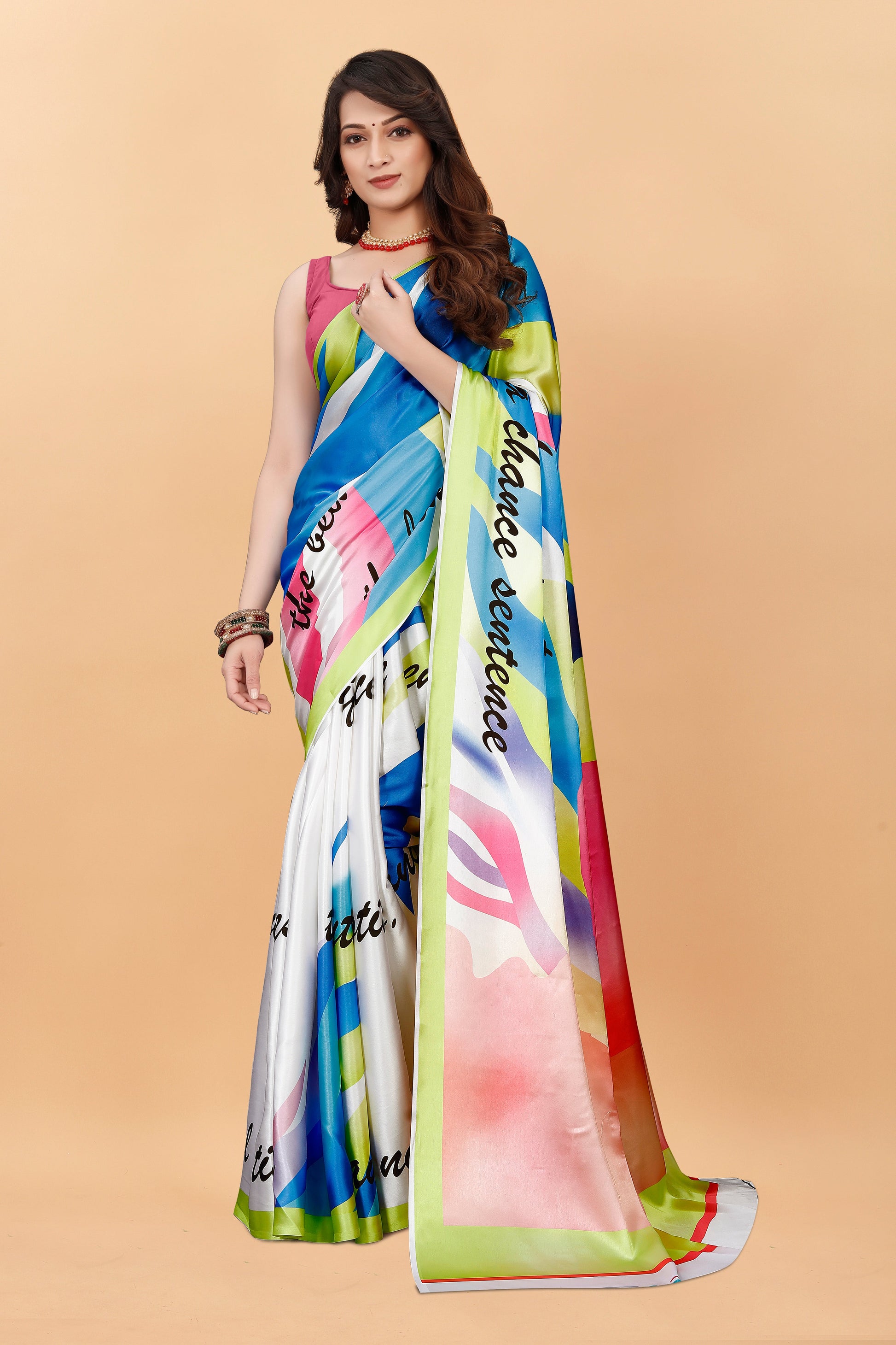 Bollywood Printed Satin Silk Saree
