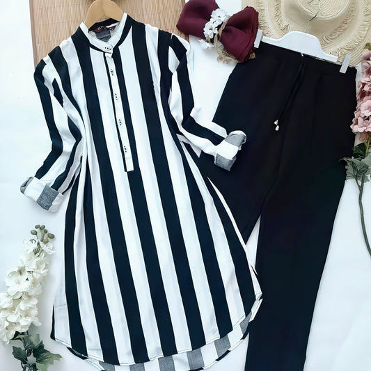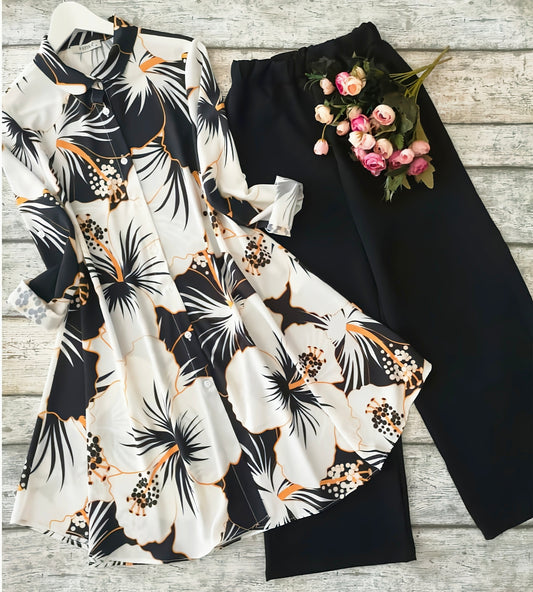 Fancy Digital Print Round Black and White Color Kurti With Palazzo