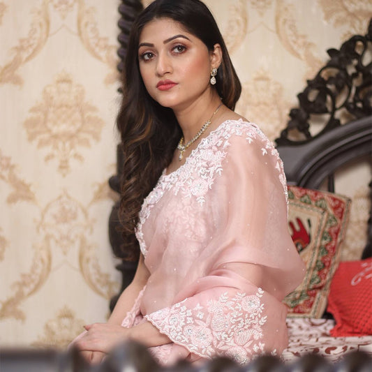 Beautiful Party-Wear Pink Organza Silk Saree