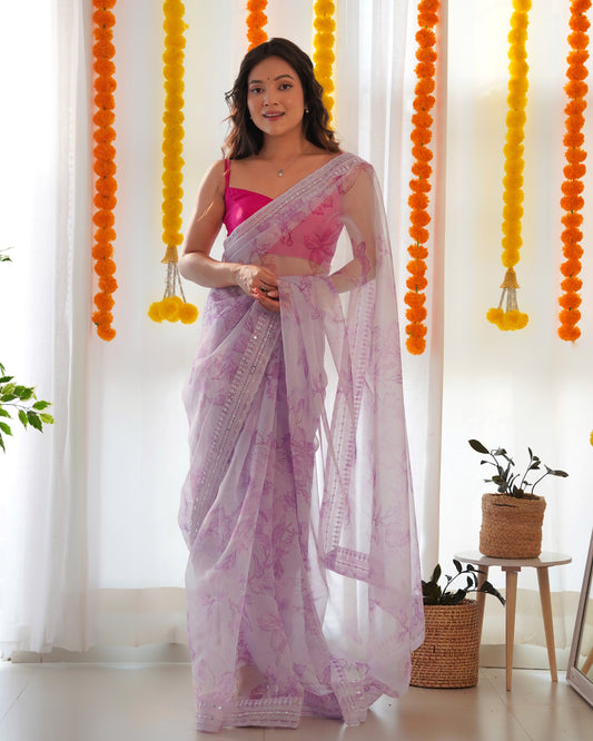 Designer Light Purple Organza Silk Saree