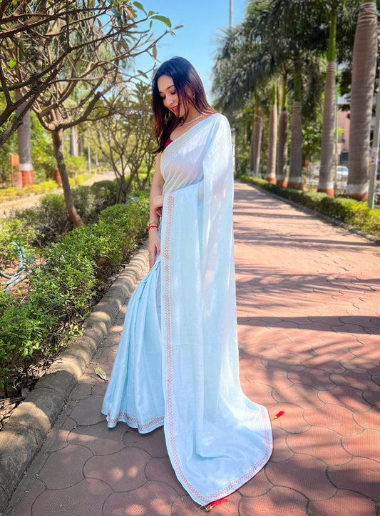 Royal Blue Colour Linen Beautiful Saree