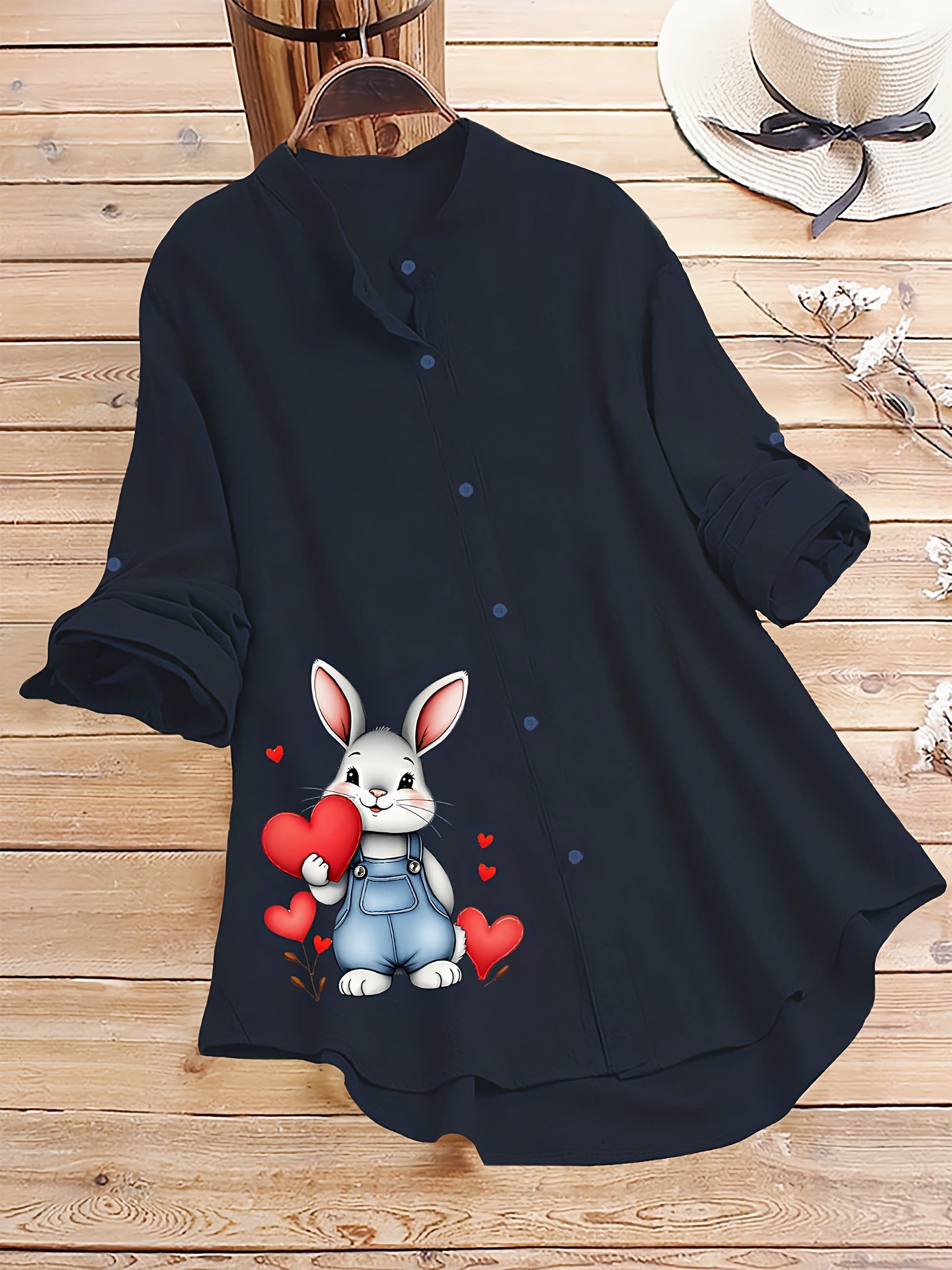Dark Blue Cute Bunny Love Printed Casual Tunic Shirt